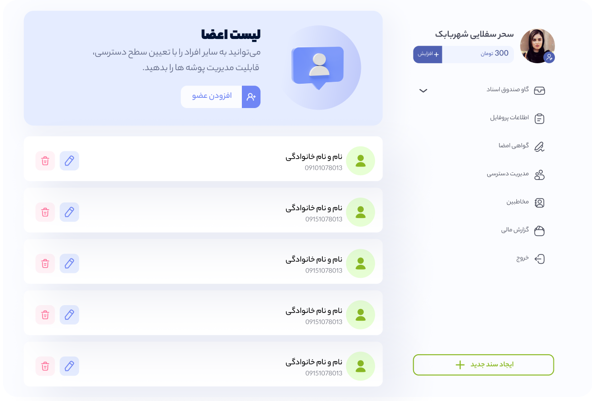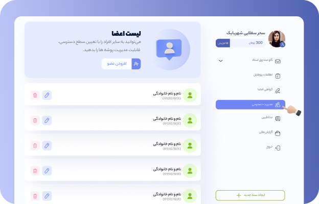 با این قابلیت میتوانید دسترسی کاربران و گروههای مختلف به بخشهای خاصی از سامانه و قراردادها را تعیین کنید. این ویژگی امنیت اطلاعات حساس را تضمین میکند. این ویژگی برای سازمانهای بزرگ که چندین تیم یا کاربر با نقشهای متفاوت دارند، حیاتی است و از دسترسی غیرمجاز به اطلاعات جلوگیری میکند.
